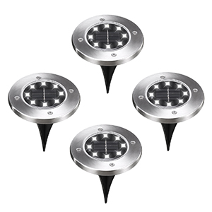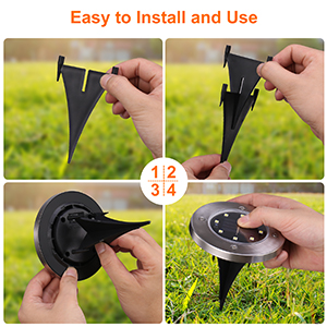 I am very pleased with these lights which I use at intervals along both sides of a garden path. They look smart and are very bright when dusk arrives. I did not use the fixing stakes and they sit nicely on the grass and have enough weight not to be affected by windy conditions. For me the real test of these solar powered ground lights is will they last beyond harsh conditions that winter throws at us. That, of course, remains to be seen but I will be delighted if they do.