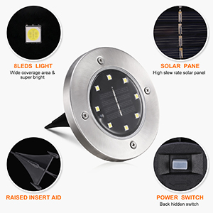 Garden Solar Lights Outdoor – Isilila 4pcs 8 LED Sensor Solar Powered Ground Lights Waterproof IP65 Path Lights with Spike for Yard Patio Driveway Walkway Lawn Pathway Landscape Pool(White) [Energy Class A+++]