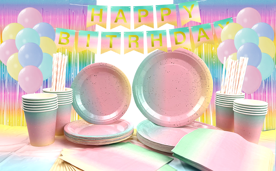 Gold Dot Party Tableware Supplies – Serves 25, Rainbow Pastel Party Decoration Tableware Includes Plates, Cups, Napkins, Straws, Happy Birthday Banner, Tablecloth, Foil Curtains Kit for 25 Guests 25 * dinner paper plate;25 * paper dessert plates;25 * paper cups;25 * napkins;25 * straws;1 * rainbow banner;1 * table cover;20 * Macaron latex balloons;2 * Balloon ribbons;40 * glue points. Check Offer Price Weight: 1.26 kg Dimensions: 30 x 24 x 11.2 cm; 1.26 Kilograms Brand: LSJDEER Colour: Rainbow Colour: Rainbow Dimensions: 30 x 24 x 11.2 cm; 1.26 Kilograms