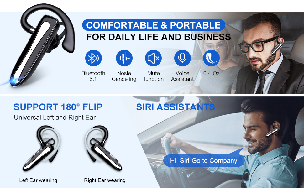 GVKAOVD Bluetooth Headset, Hands Free Wireless Bluetooth Earpiece for Cellphone, In Ear Headphones Bluetooth 5.1 Earphones with Noise Canceling Microphone LCD Case for Driving/Business/Office
