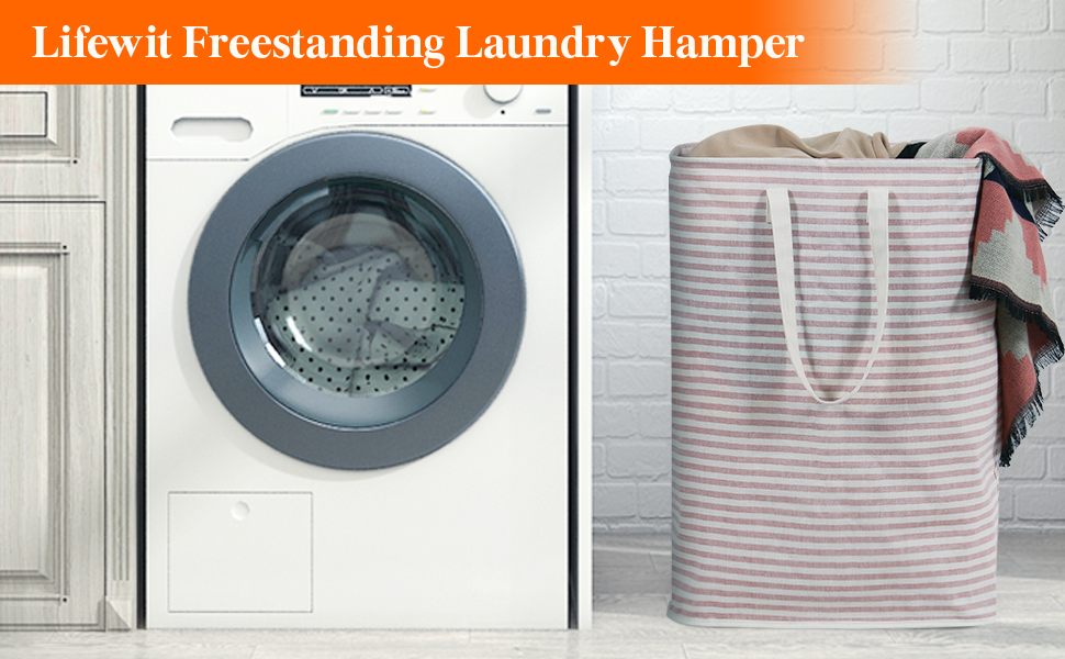 I am using this freestanding laundry container for throwing used clothes in it. It doesn’t take up much room as it is tall rather than wide. Very lightweight. Just what I wanted.