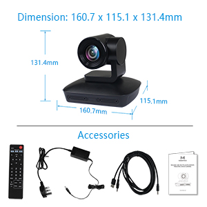 Ideal for Small and Medium Business Meetings72-degree wide field of view so easy to position for groups as well as individual use. Easily fit multiple people in the view. | Drive-free, plug and playJust connected to laptop or desktop via the USB port. Easy and simple to setup and working in a few seconds. | What You GetThe package contains: PTZ 10x optical zoom camera, power adapter, USB cable, remote control, manual |
