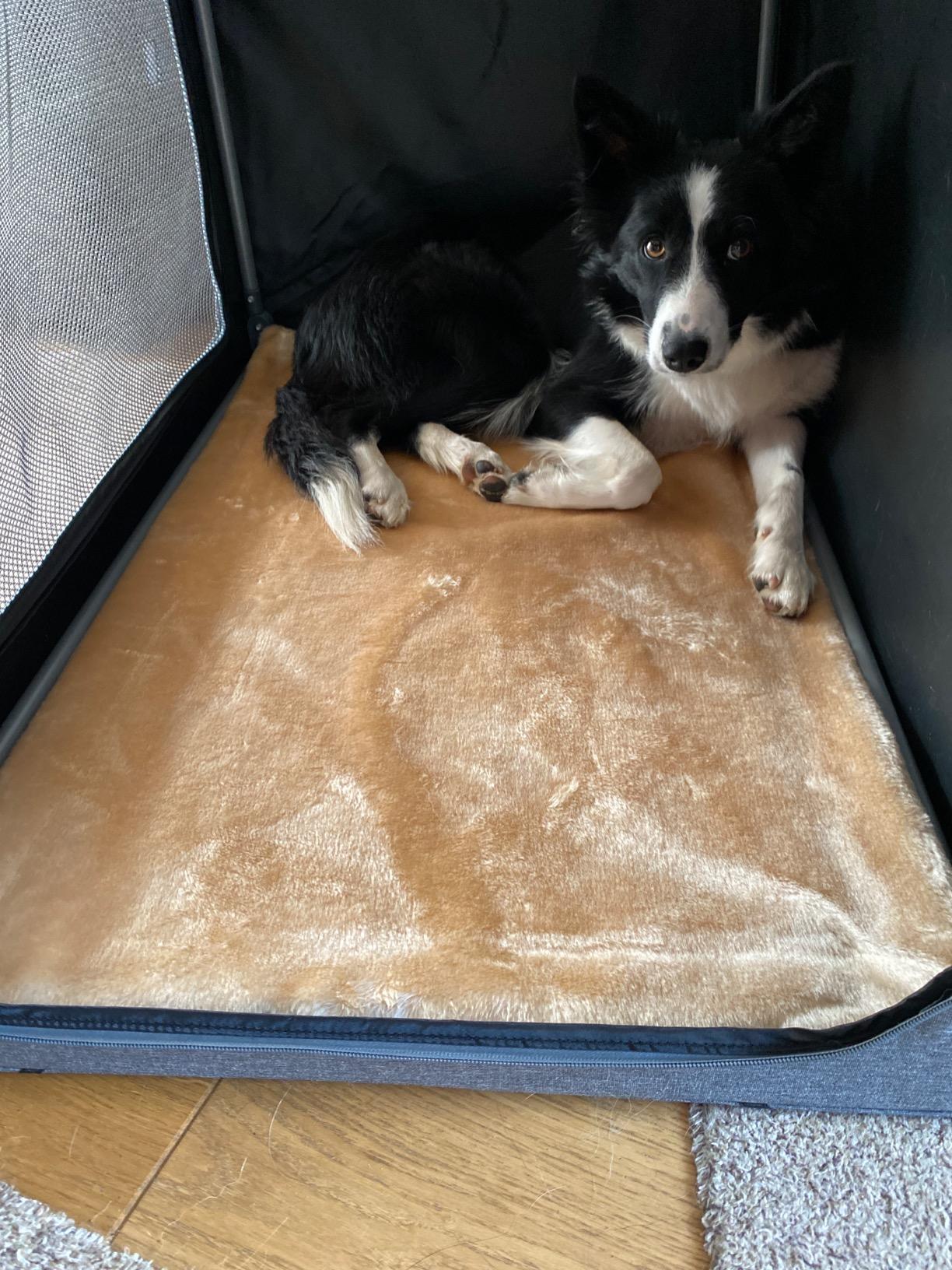 Perfect easy to assemble pop up dog crate. Soft and comfortable. Our new dog took to it straight away. We have the larger size for our other dog and they fold away into a carryable flat crate to take wherever you travel with your furry family. Perfect!
