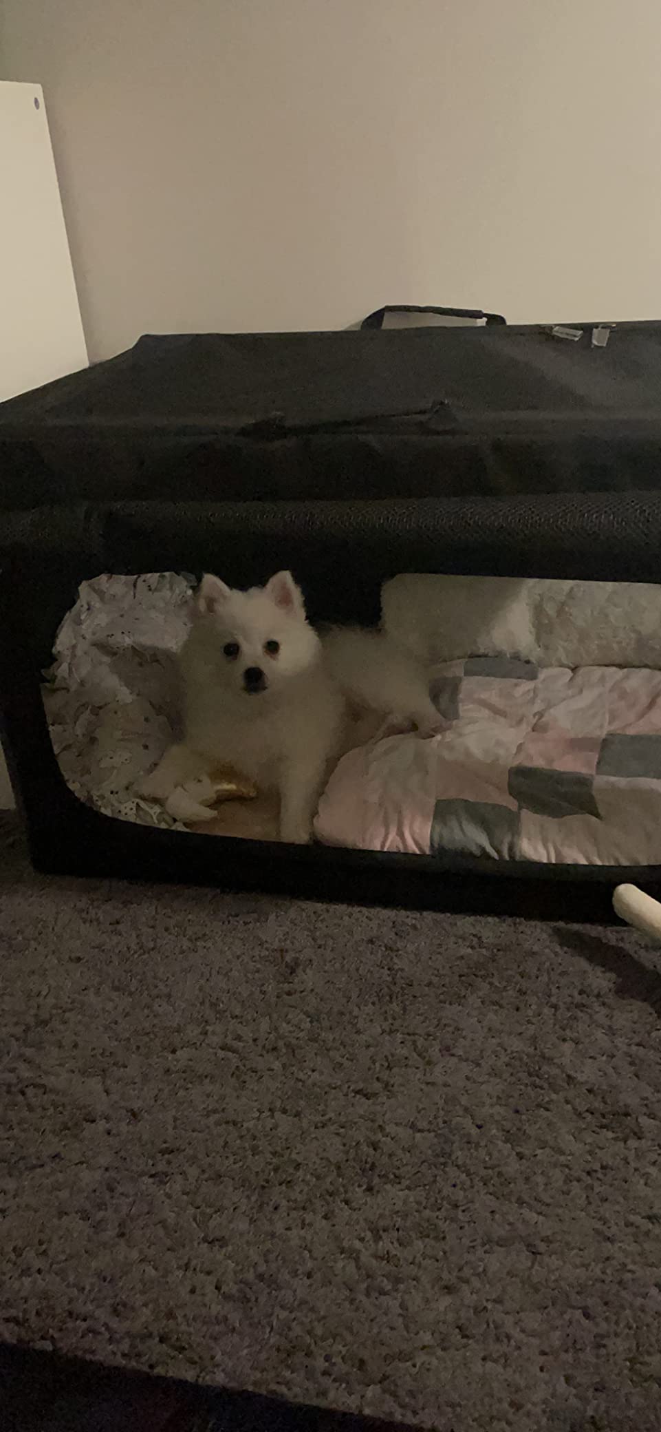 I chose this crate as wasn’t keen on metal bar style crate- it was for my Morkie who was using it after a knee operation.