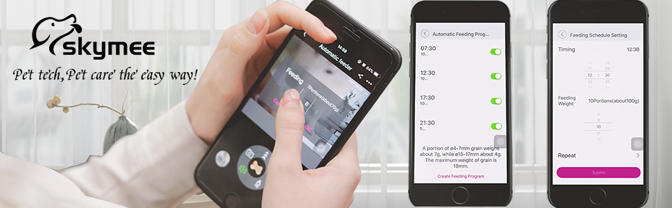 SKYMEE saved my life with this product. My GSD who needs to eat every 4-6 hours can have a set dispensing schedule with the luxury of added manual feeds if I’m running late. Convenience-yes, peace of mind-completely, heart happy-HELL YES.