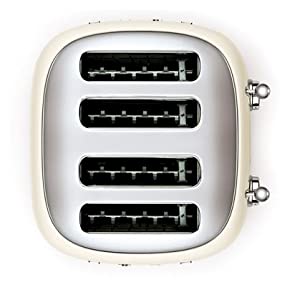 Enjoy your breakfast in style with this beautifully designed 4 slice toaster. The quality powder-coated steel construction is complimented by a vintage 50s design that really adds elegance to your kitchen countertop. This toaster features 4 extra wide slots that are big enough for nice thick slices of bread and bagels, with a special bagel function to give you the best results.