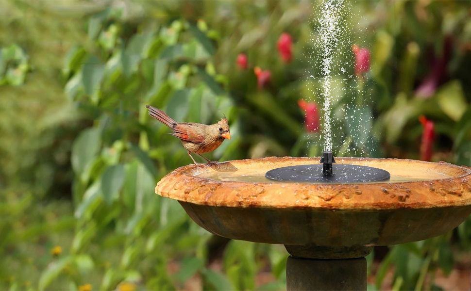 I use this in my bird bath. It works well in direct sunlight but doesn’t hold a charge when it clouds over.