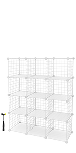 SONGMICS 16 Cube Metal Wire Storage Organiser, DIY Closet Cabinet and Modular Shelving Grids, Wire Mesh Shelves and Rack, Black LPI44H