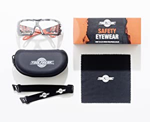 Select Your Wearing Style!Our safety glasses are meticulously designed to ensure a comy fit all day long. Wear them solo or with the adjustable headband included.It;s all up to you. Forget about glasses coming loose! Minimize slipping accidents. Minimize frustration. Maximize wearing comfort! It’s that simple ! | Full Accesory PackPut your glasses down unprotected is never ideal thats why we’ve included the hard case to keep your equipment safe and prolong its lifetime . Keep your lenses clean with the microfibre cleaning cloth and maintain perfect vision. Choose to wear with the headstrap or legs making you adaptable for all situations | Adapt them to your needsPerfect for work , sports and those who love activities . ToolFreak Rip Out safety glasses offer all round wraparound protection and a precise panoramic view. With foam padding to make them perfect for all day comfort wear and improve protection |