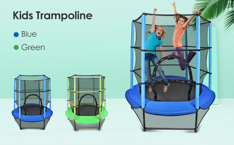 Veluoess 55″ Kids Trampoline with Safety Enclosure Net and Pad, Mini Garden Outdoor Trampoline Indoor and Outdoor Exercise Fitness Equipment for Kids 3+ Age