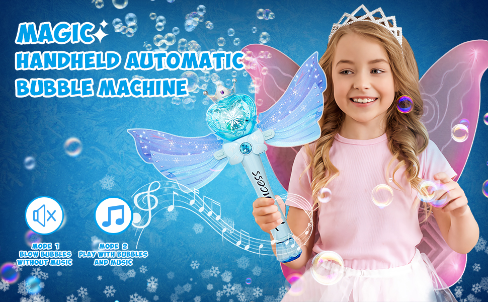 Bubble Machine for Kids,Automatic Electric Frozen Toys Princess Bubble Wand with Cartoon Musical Light-up for Party Outdoor/Indoor,Bubble Wands Xmas Gifts for Kids
