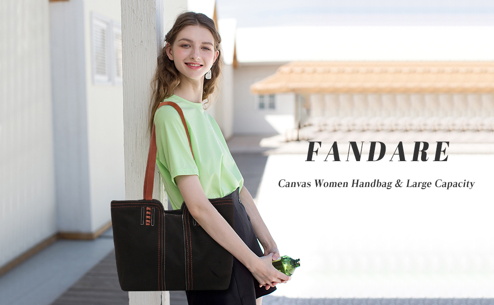 FANDARE Fashion Canvas Tote Bag for Women Casual Shoulder Bag Big Capacity Hobo Handbag Top Handle Bag for Travel Work Party Office Shopping Black