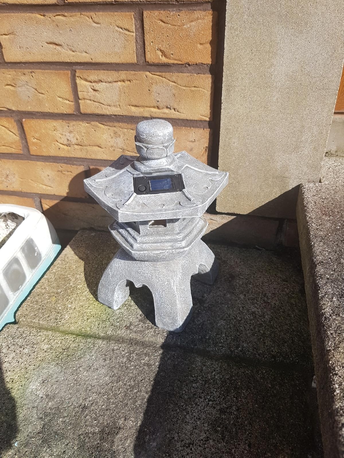I bought this little pagoda to add a little oriental touch to my water fall – I wasn’t bothered about the solar feature but I have to say that this little statue adds a whole new dimension to the garden at night – along with the other solar lanterns in the garden it gives the garden a magical feel at night – so glad I bought it.