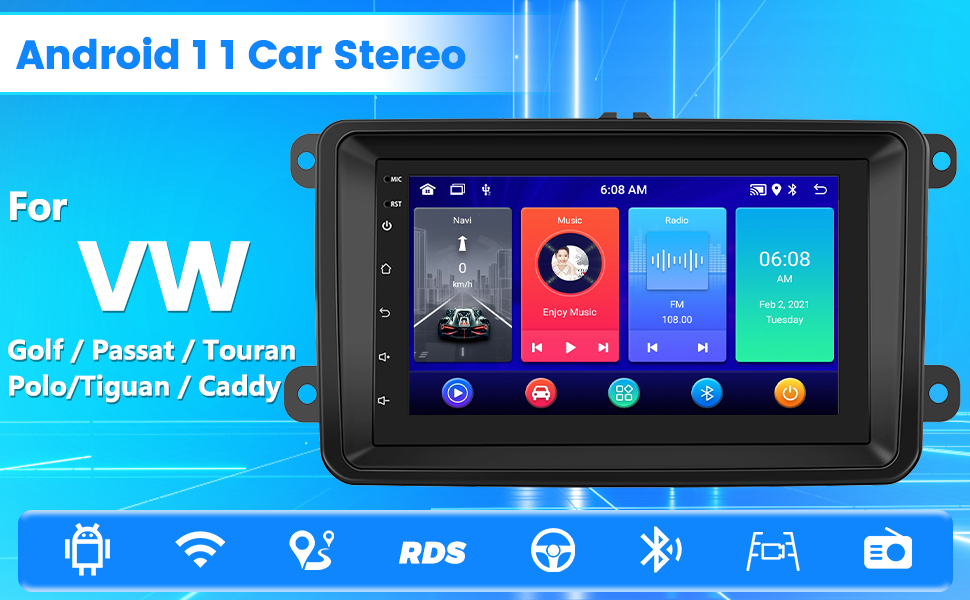 Hikity Android Car Stereo with Sat Nav Fits for VW Passat Golf Polo T5 Caddy, Double Din 7 Inch HD Touch Screen Car Radio with BT WIFI SWC RDS FM Full RCA Output Mirror Link Reverse Camera+Canbus