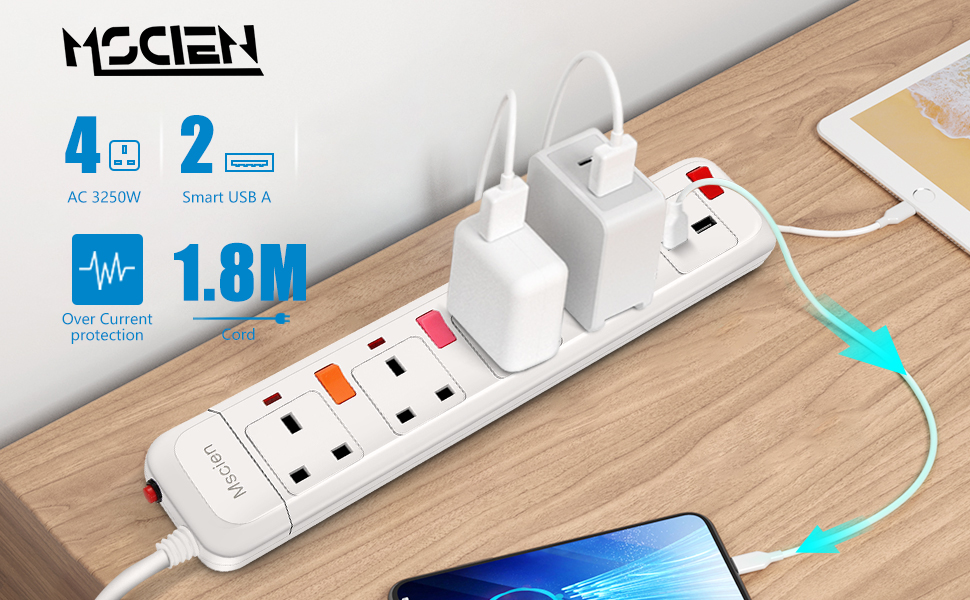 Mscien 2M Extension lead with USB Slots, Switched 4 Way Socket Extension Cable Surge Protection Wall Mountable – 2 Meters Cord(Including Sockets) Product Specifications Voltage Compatibility:100~250V AC 50/60HzMax. Power Rating:3250WUSB-A Output:5V 2.1A Max Per PortUSB-A Output:5V 2.1A Max Per PortItem Dimensions:34*6*3 cm (13.39″ *2.36″ *1.18″ in)Individually Switched with IndicatorIndependent control switch with Independent red indicator light, no need to plug in and out your charger for safe operation.Energy saving and safe.Wall MountableTwo Keyhole Mounting Slots keep it where you want it, even hang it on the wall.Safety Door SocketsBuilt-in safety shutters in AC outlets protect users from the direct touch of the live parts. Check Offer Price Dimensions: 40.6 x 21.6 x 4.9 cm; 560 Grams Manufacture: Mscien Origin: China