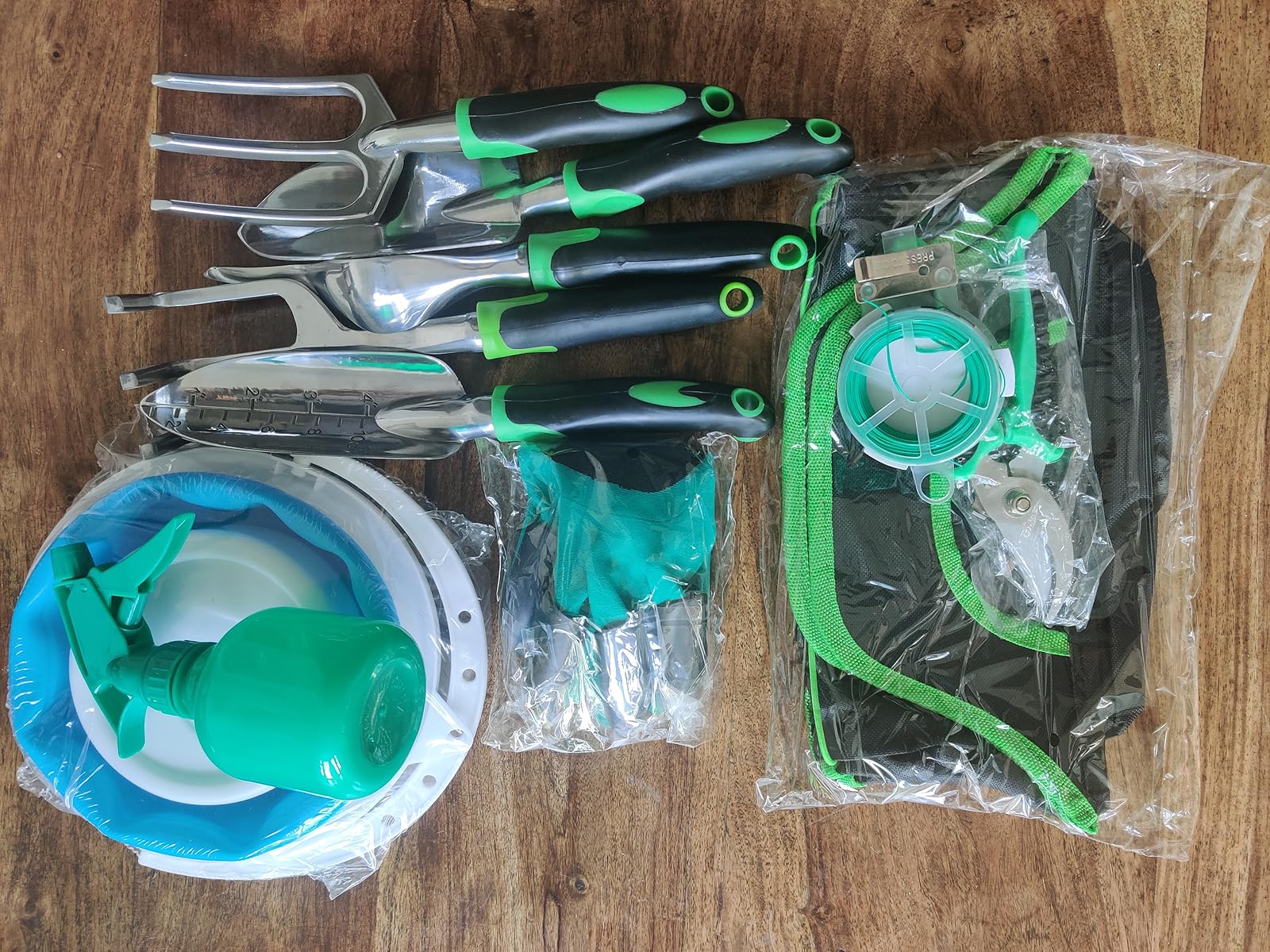 Very light weight and has everything that I needed to take care of the garden. The carry case makes it easy to store all the tools in one place so you don’t lose any of them like I have in the past. Good value for money. Worth getting if you’re a beginner in gardening.