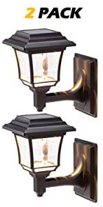 LeiDrail Solar Fence Lights Solar Lights Outdoor Garden LED Solar Powered Outdoor Wall Lights Waterproof Decor for Patio Yard Warm White 2 Pack [Energy Class A++]
