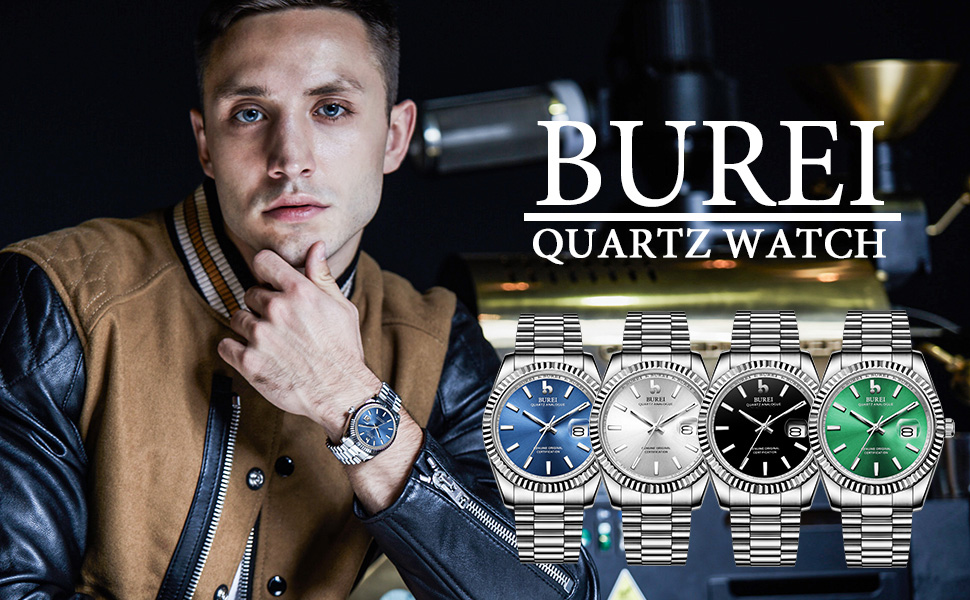 Ich sammel Uhren schon lange, alles was sich so im Preissegment von 100-500 Euro bewegt. Als Ich die Burei bestellte hatte Ich keine riesigen Erwartungen, dachte Qualitt wird ok sein fr den Preis und es wird eine gute Alltagsuhr. Dann kam der schicke Umkarton mit dem noch schickeren Inhalt. Ich bin sowas von begeistert von dieser Uhr, allgemein von Burei. Die Qualitt bertrifft meine Erwartungen sehr! Eine solch hochwertig und gut verarbeitete Uhr findet man in dem Preissegment nur sehr selten, kenne Ich nur von Invicta. Das schne Prsidentband an der Uhr ist mega schick, kenne Ich so nur von Uhren wo man 500 aufwrts bezahlt. Ich hatte sogar als Geschenk noch eine schlichte Burei Uhr mit Lederband dabei! Wahnsinn, was soll man da noch sagen. Service Top, Uhren Top…eine der hochwertigsten Uhren in dem Preissegment die man kaufen kann! Hier werden weitere Uhren folgen.
