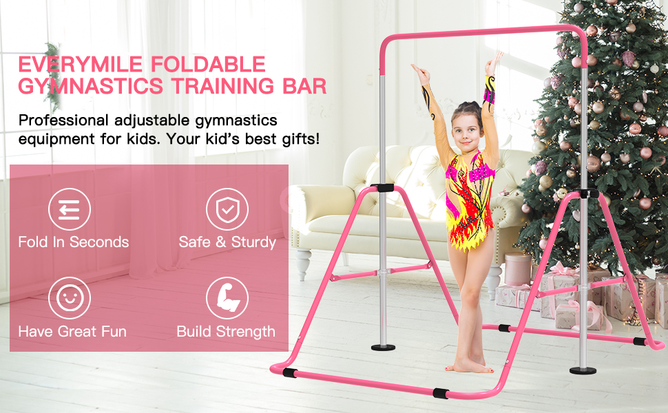 Brilliant gymnastics bar. I bought this for my five year old and she loves it. It folds nicely along my dining room wall when not in use. Very sturdy but would recommend a gym/yoga mat underneath.