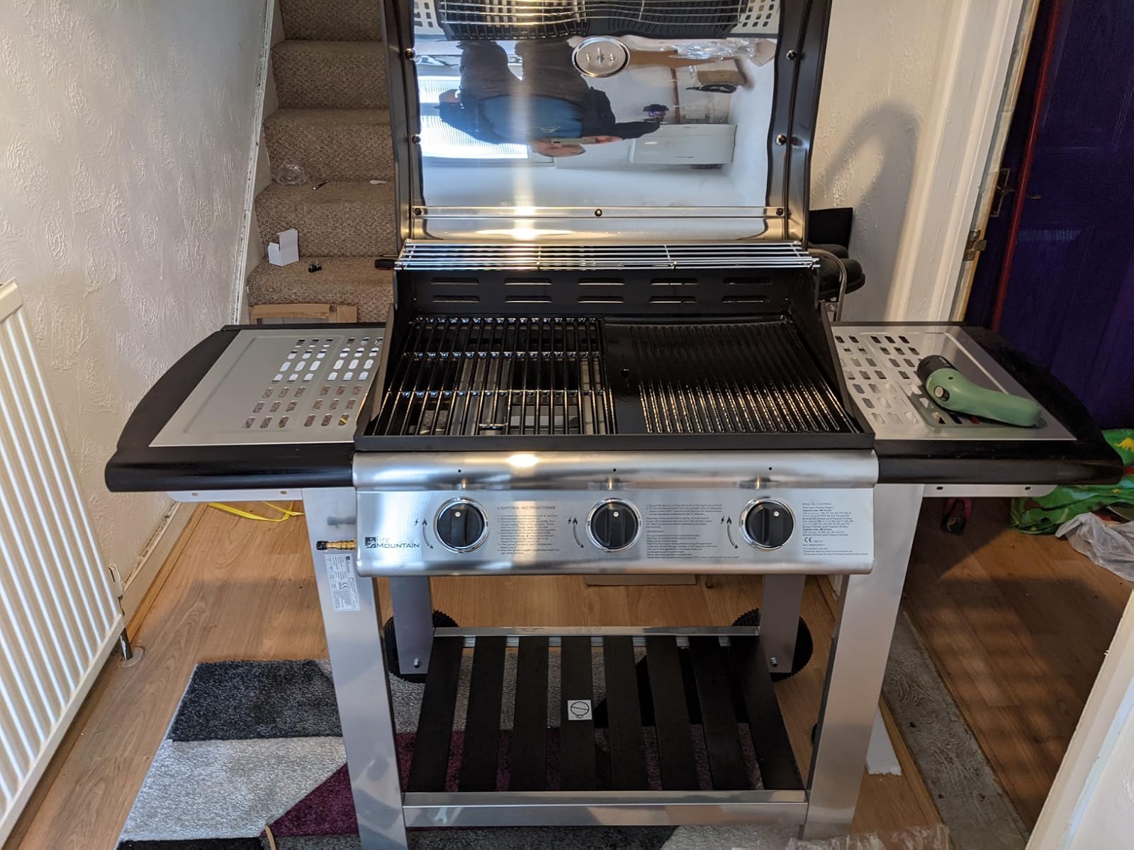 This arrived today and being a competent DIY’er I found the assembly straightforward and the instructions easy enough to follow, it took about an hour and a half taking my time and with a few interruptions. As clearly stated in the description, mine did NOT come with a hose or regulator, so I ordered these separately. The metal used throughout is of a good thickness and the BBQ is very sturdy when assembled, I’ve just fired it up to ‘burn off’ as advised for 15 minutes and all three burners lit first time (once I’d bled the air out) the burners are easy to control the flame and having just cooked some sausages for a trial run/lunch it cooks very well indeed. I like the fat tray, which slopes down to a ‘well’ with a small tin underneath, so excess fat/juices won’t lie in it or build up if cooking a lot of food.