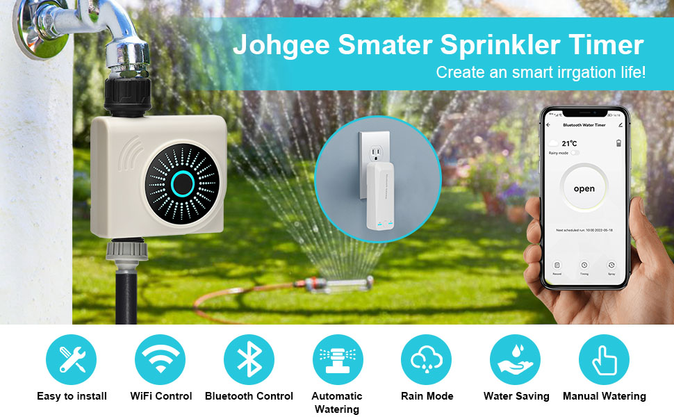 Johgee Water Timer WiFi Hub, Smart Water Controller Bluetooth, Watering Computer, Control Irrigation System for Garden Lawn, Automatic Irrigation, Manual Control, Rain Delay