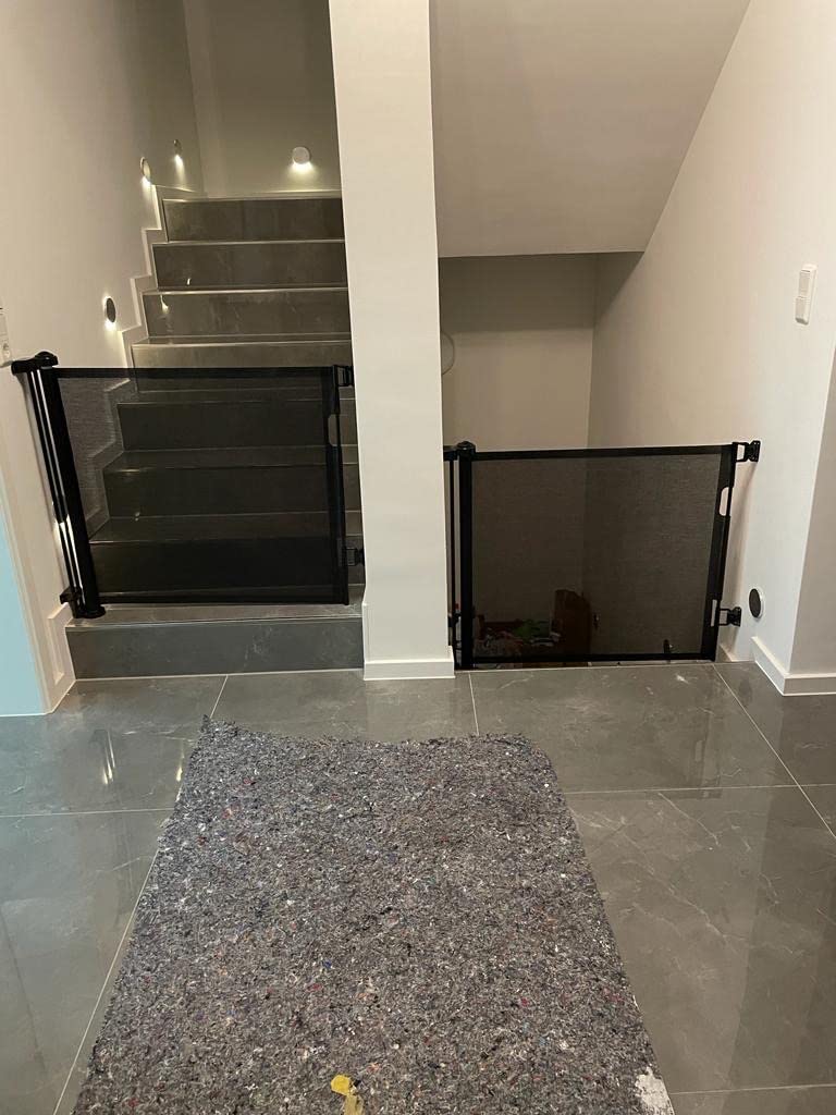 Great stair guard and looks pretty stylish. The lock feature is great and so far it’s doing a great job of keeping our dog from going upstairs