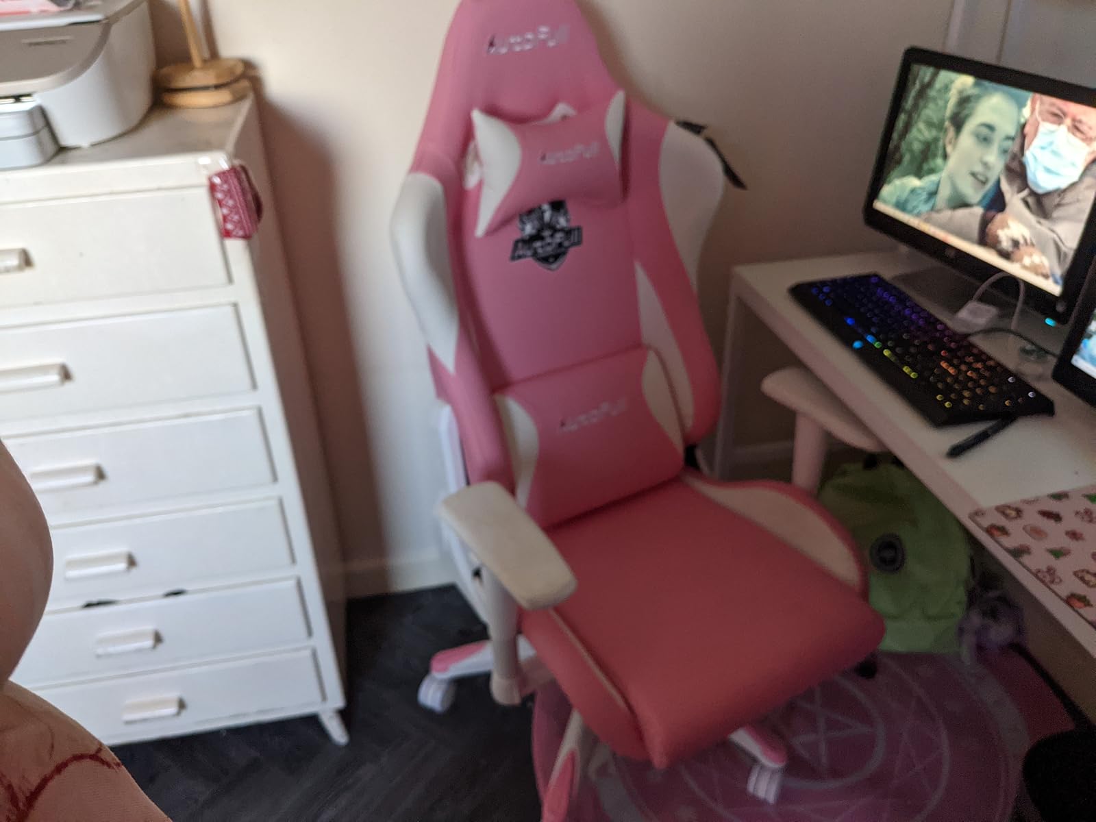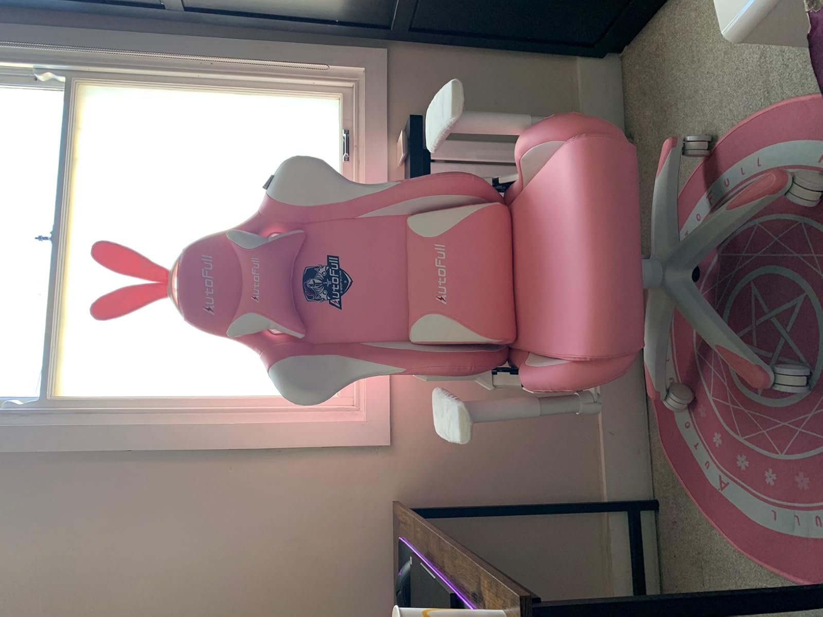 Edit: it has been almost an entire year since I’ve had this chair and I’m still absolutely in love with it! I recommend ANYONE who loves pink and gaming to buy this chair! It is worth the money. Autofull has done great with their gaming chairs! I’ve added an updated picture of my gaming setup and it looks amazing with the chair in it.