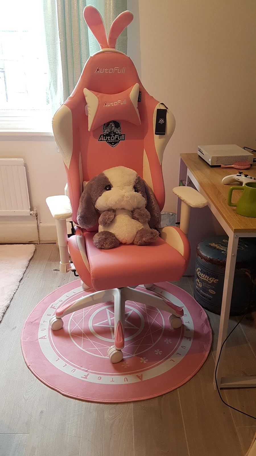 The bunny ears on the back, and the bunny tail addition are really cute, the arm rests are very very soft like.. furry suede? I’m not sure what the material is called. Matches the pink razer set perfectly if you have all of those components as well. I will update this review in a few months and then after a year as I got the warranty that allows me to send it back for any scratches and tears for like 5 years I think, etc, but for now I’d say it was worth my money.