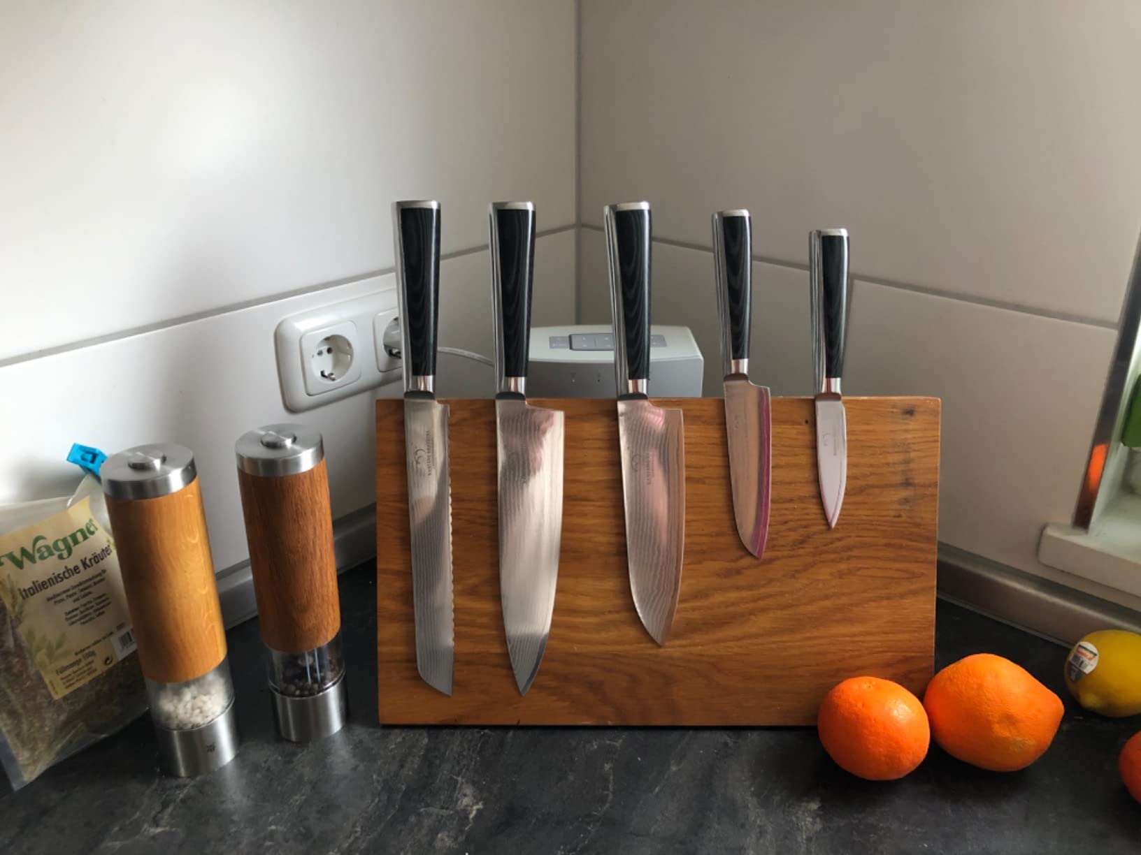 Uns als Kchenduo hat das Set in jedem Fall positiv berrascht und berzeugt — auch wenn der Preis natrlich nicht von schlechten Eltern ist. Aber unsere Erfahrung mit vermeintlich preiswerteren Produkten hat nicht nur einmal gezeigt, dass die Investition in richtig gutes Kcheninventar durchaus lohnt. Daher empfehlen wir / empfehle ich dieses Set gerne weiter, an alle diejenigen, die nach einem soliden, sehr gut verarbeiteten, handlichen und vor allem sehr scharfen (und scharf bleibenden) Messer-Set suchen. Vom Hersteller wnsche ich mir lediglich, dass er das Brotmesser mit der gleichen Griff-Optik wie das Set ebenfalls einzeln ins Angebot bringt. 😉