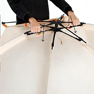 The tent is light weight and easy to carry around as well as assembles quickly. A little tricky on when to fold away but I would suggest, it is useful to watch the video for guidance.