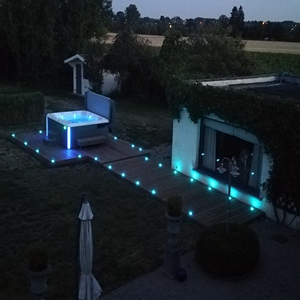 Les spots ont un diamtre de 31 mm (avec un perage 22mm), et diffuse une lumire de couleur blanche chaude, ce qui apporte un ct tamis et cocooning votre extrieur.