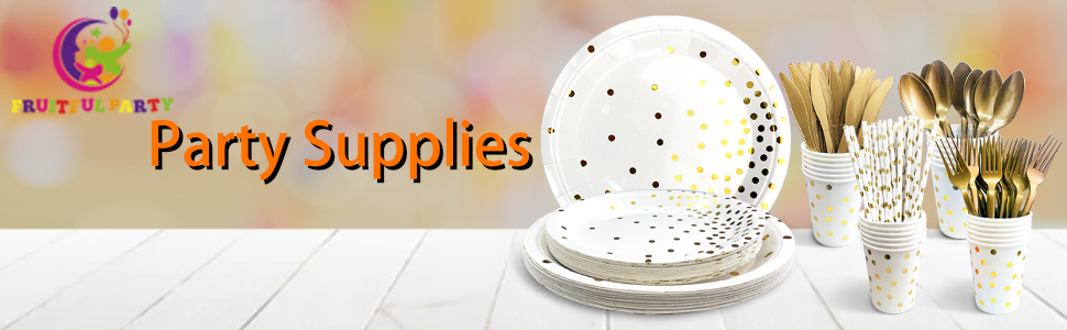 White and Gold Party Supplies 193Pcs Golden Dot Party