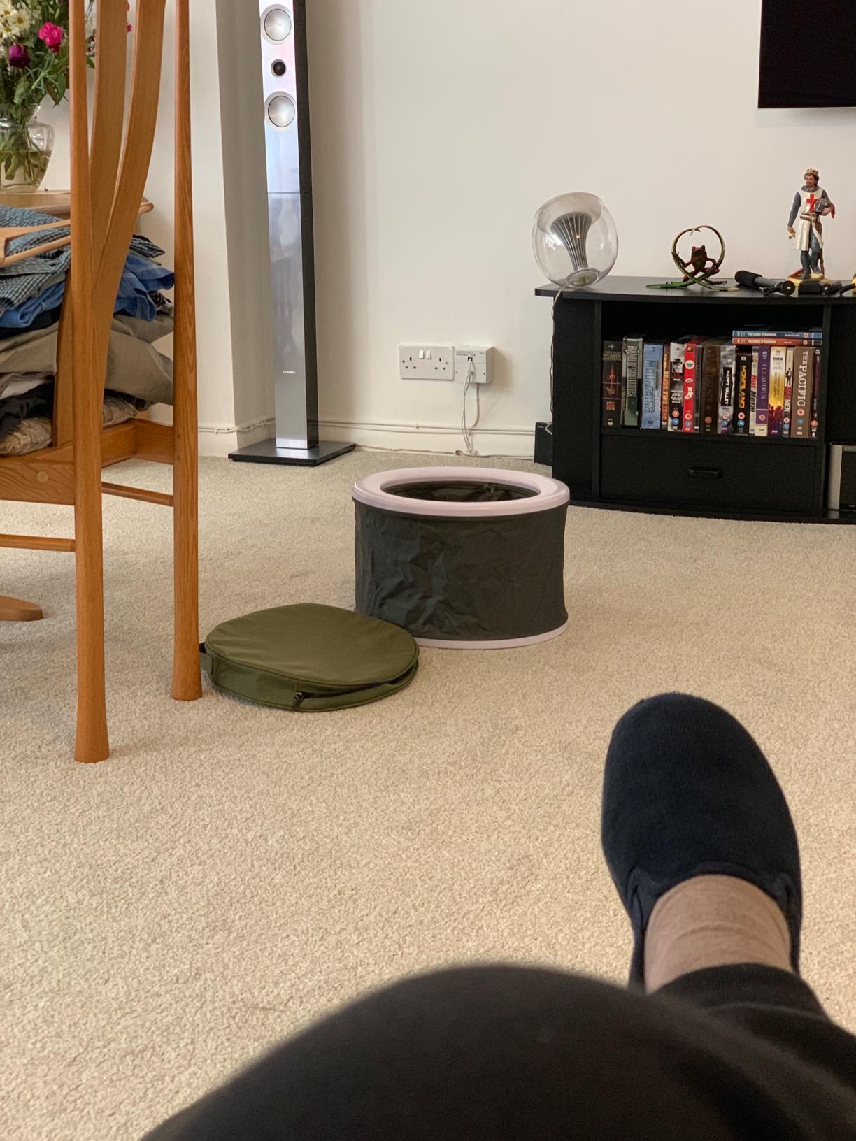 Absolutely brilliant for camping. Put a flat bit of wood over it in the tent and use it as a bedside table, and loo for night time. Marvellous. Packs very small.