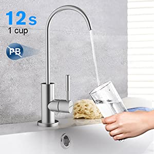 Water output from the faucet is decent, not slow and not really fast but somewhere in the middle range. Its a good looking faucet and well made, not cheap. Overall I am completely satisfied that I purchased this unit and Highly recommend it to anyone looking for great tasting water. You wont be disappointed!