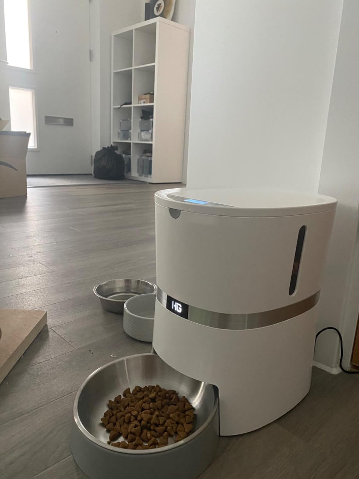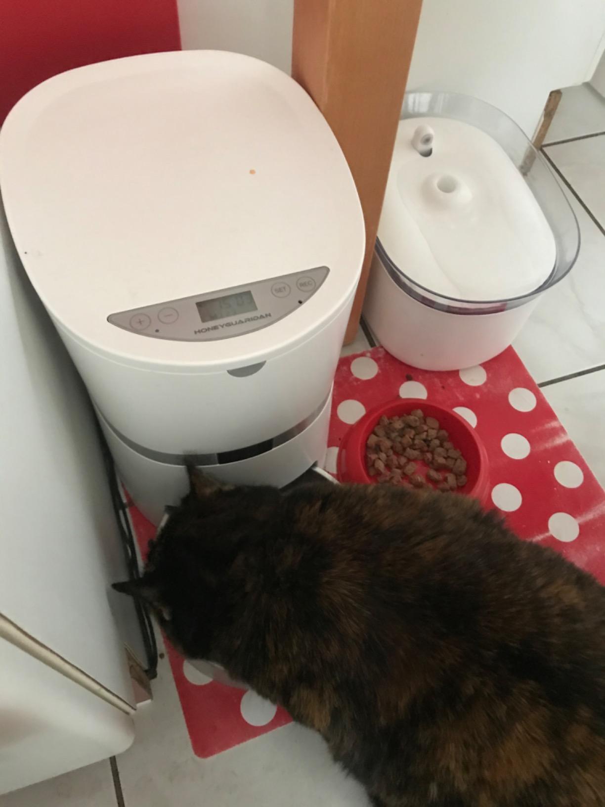 Easy to program, convenient, cats love the sound of my son saying ‘Luna, Lyra, kibble time’! Only drawback is the sound of the kibble hitting the stainless steel bowls makes quite a racket, but we have gotten used to it! Highly recommended