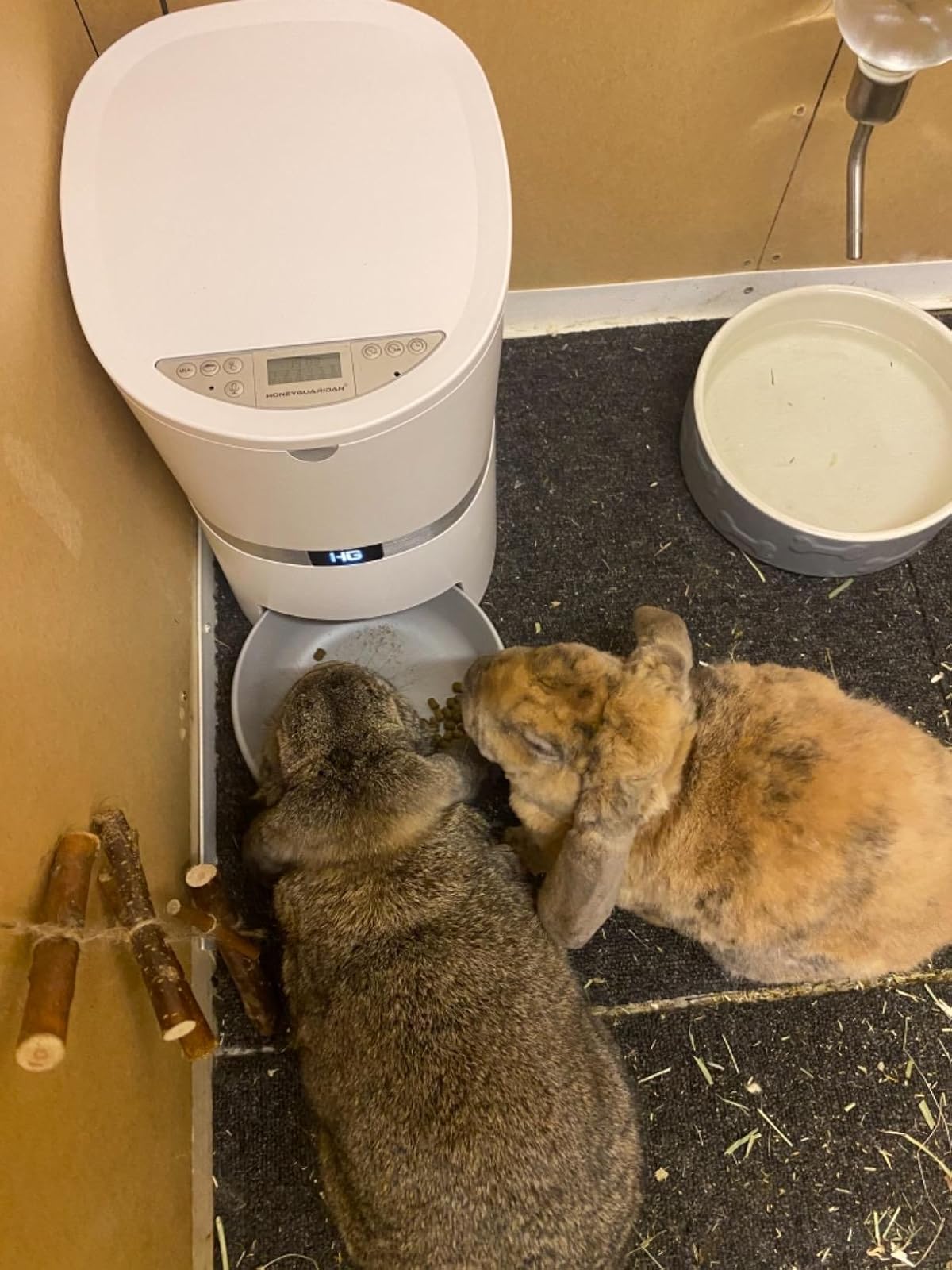It is very easy to put together with the help of the guide and online videos. Allows for a reliable machine to feed pets on time and is incredibly useful for people with pets who have busy morning scheduals. The option to use batteries or a cord is my personal favourite feature as my rabbits like to bite cords. This is very beneficial for owners who’s pets like to play or break with cords, and allows the machine to be more durable. I would recommend to people who struggle to feed pets at the same time daily or who can’t always be present around certain feeding times.