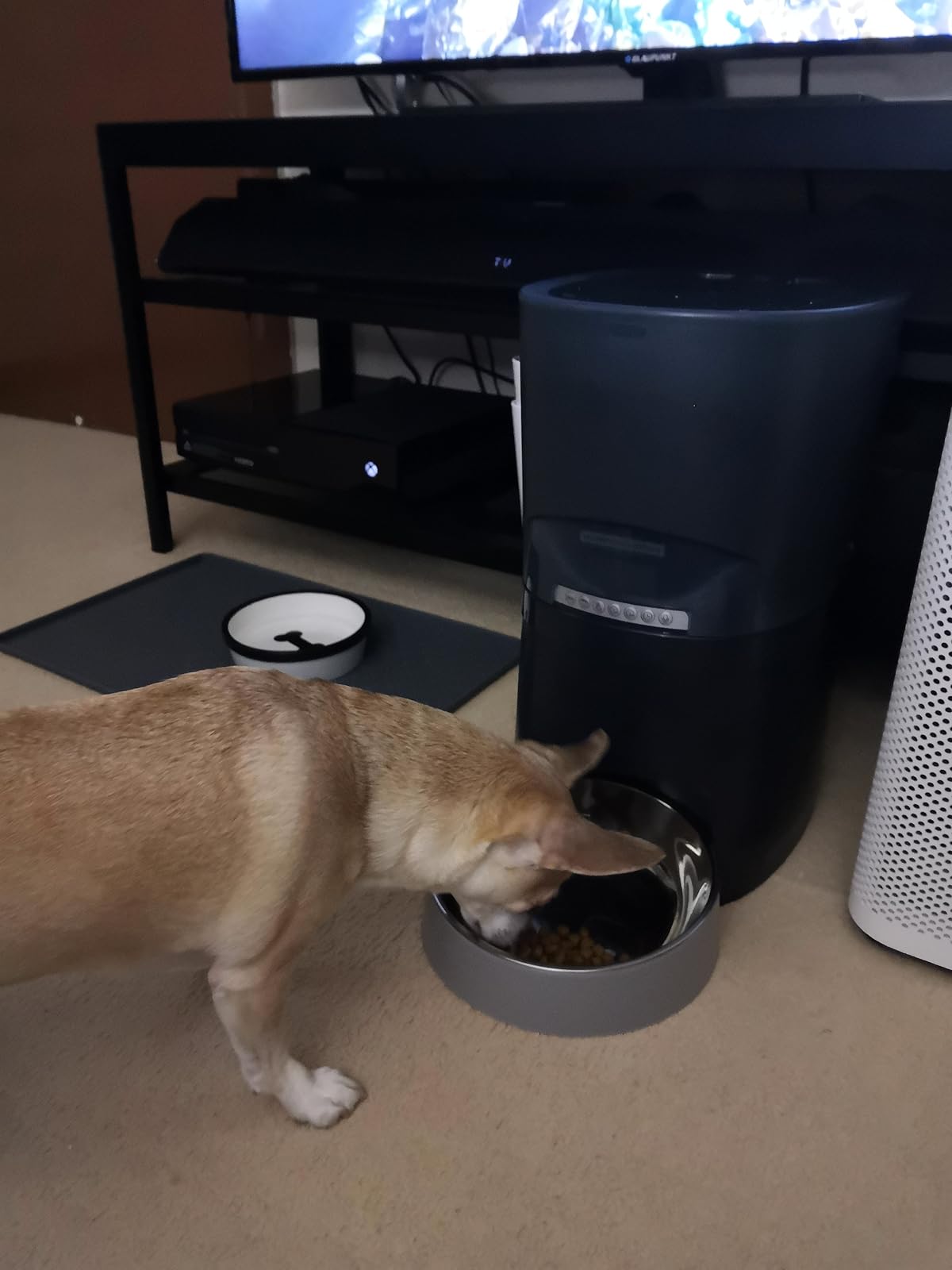 We’ve also programmed it to have Tim’s voice (the person she most dislikes) on it before the food comes out in the hopes she’ll start to like him more. I’m not sure if it’s working but it’s entertaining to see her respond to his voice anyway.