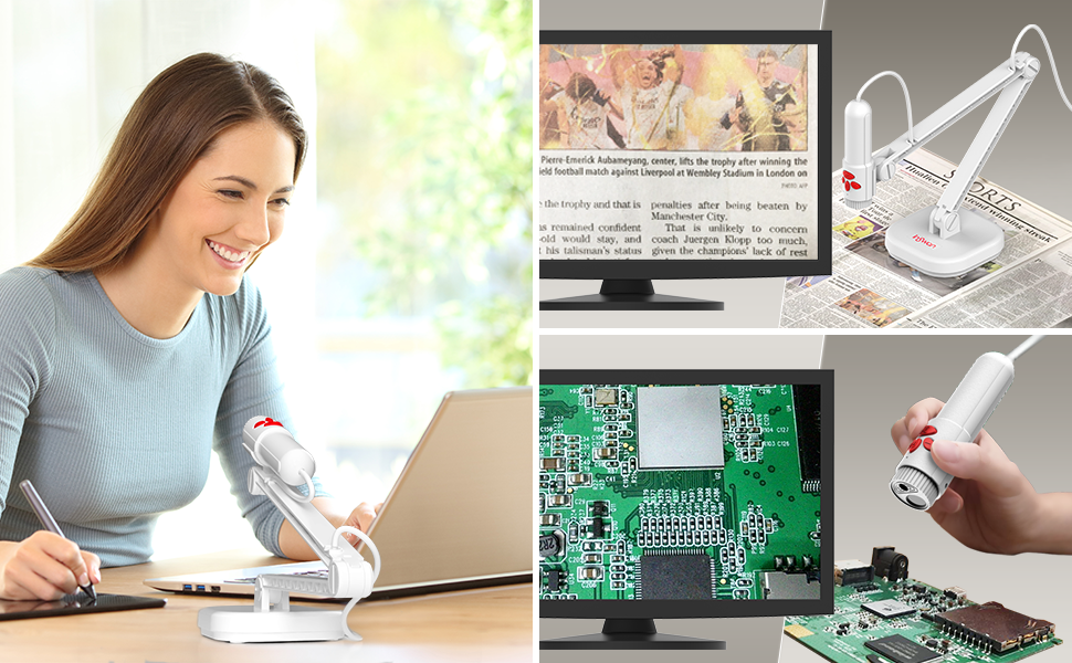 I was pleasantly surprised with this desk top document cam considering that it was such a low price. As an online teacher completely remotely teaching students in a different state, this was very easy to use and when I travelled it was portable and compact in my luggage. I really liked that the camera piece came off of the stand, and that it had such a long chord- it made showing students outdoor areas in my greenhouse, and exploring bugs in the gardens so much easier- also science experiments were fun too with the adjustable stand and ability to zoom or pan out. I have recommended it to several of my coworkers who were looking for an affordable doc cam to use in their online learning environments as well. It was compatible with multiple computer setups and easy to install and update.