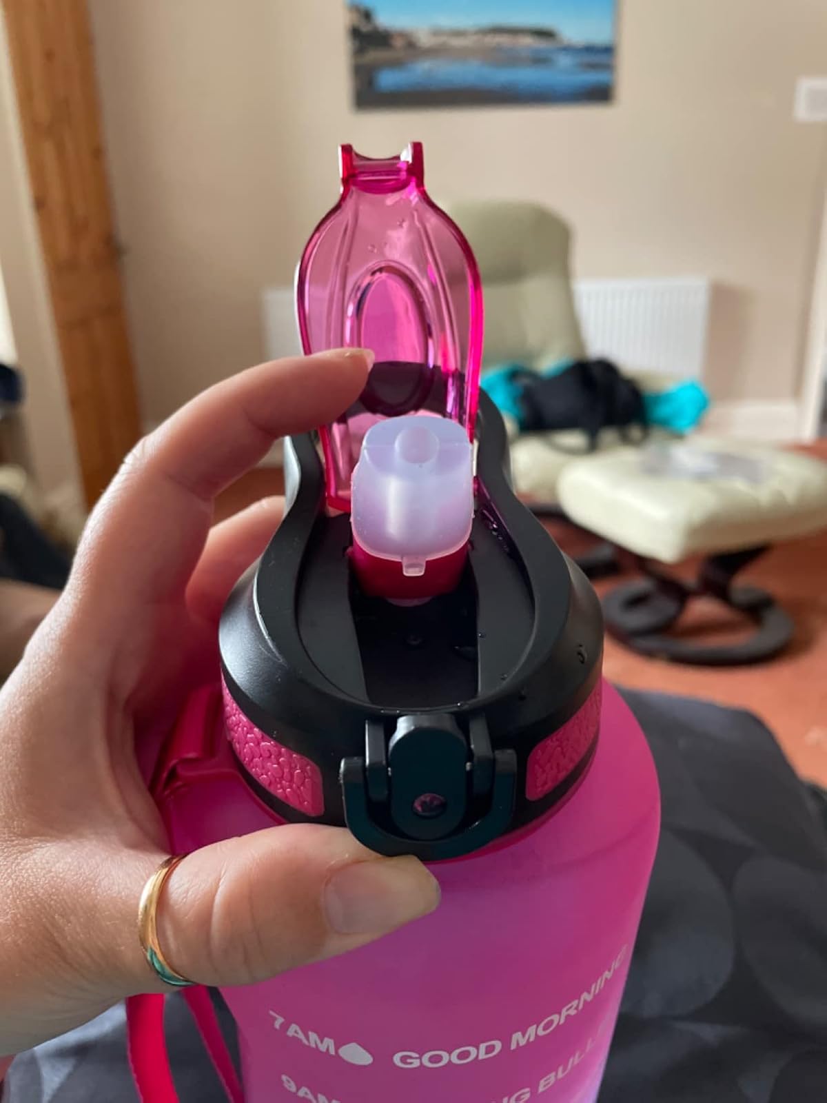 This is a large water bottle with straw. I got it for my daughter to take to uni and fill from the sink in her room. That was the problem though as the bottle is too big to fit under the tap. The bottle is quite a bit bigger than the one litre ones so you’d need to use a water jug or the kitchen sink tap to fill it. The bottle is good quality though and it’s really easy to drink from with the straw.