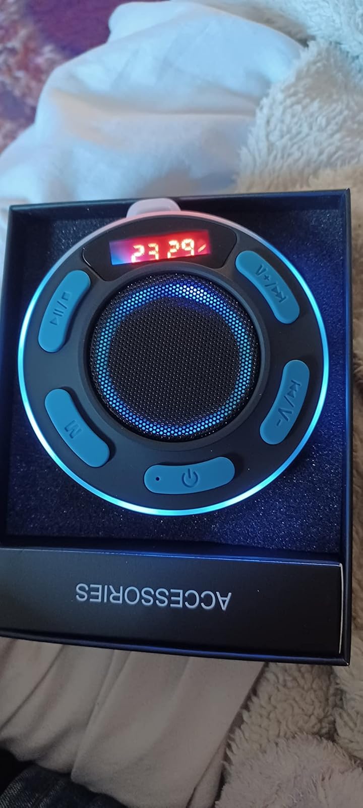 I wasn’t actually expecting this to be as good as it is for the price. It was really easy to set up – just turned it on, searched for Bluetooth devices from my phone and it connected straight away. It looks great when it’s lit up in the shower and the buttons on there allow you to change tracks and control the volume whilst you’re in the shower (which is really useful and something I couldn’t do before when I used to just put my radio in the bathroom doorway). Because the speaker is in the shower with you too, the sound doesn’t get drowned out by the noise of the water. Very pleased I got it.