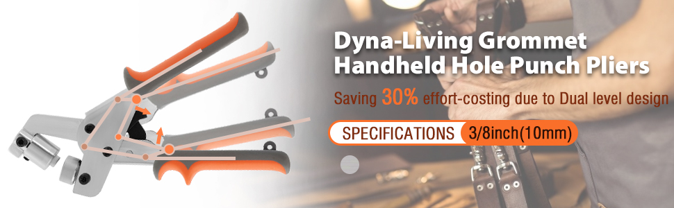 Dyna-Living Grommet Handheld Hole Punch Pliers Grommet Machine Hand Press Tool with 500 Silver Grommets of 3/8 Inch (10mm), Portable Metal Manual Grommet for Belts, Crafts, Rubber, Poste
