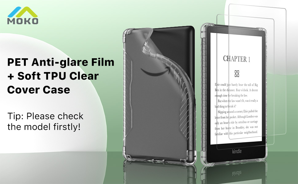 MoKo [2-Pack Screen Protector and Case for 6.8″ Kindle Paperwhite (11th Generation-2021) and Kindle Paperwhite Signature Edition, Slim Soft TPU Case with Anti-Glare Premium PET Matte Protective Film