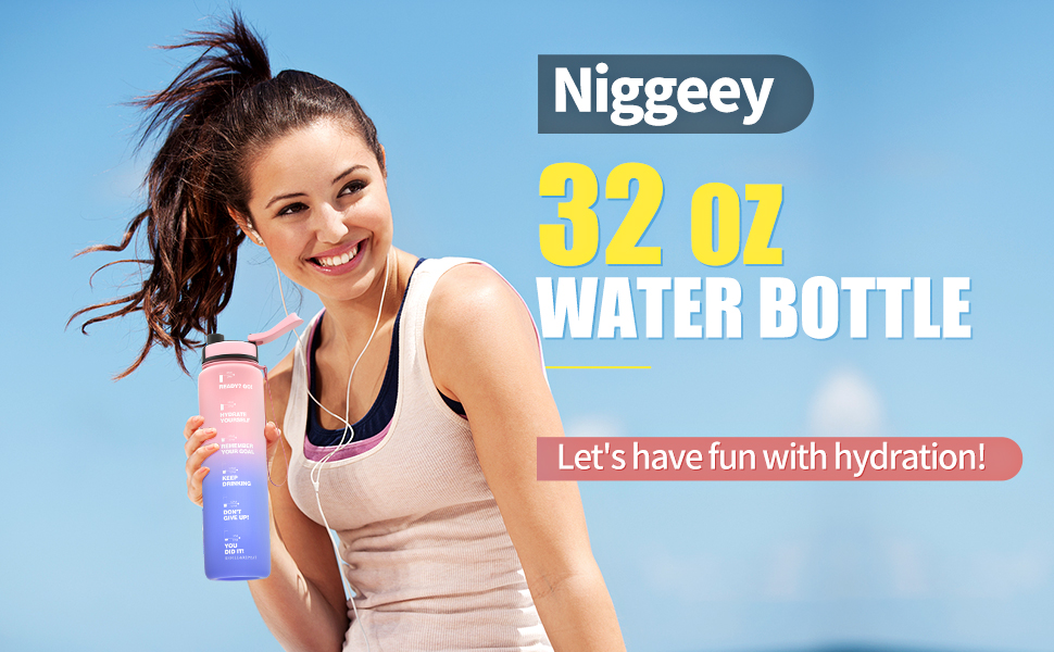 Niggeey 1Litre Motivational Water Bottle with Time Marker, 1000ml Sports. Great bottle. Will help me drink more water.