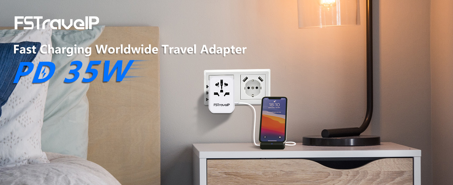 Worldwide Travel Adapter with USB C PD 35W Fast Charge