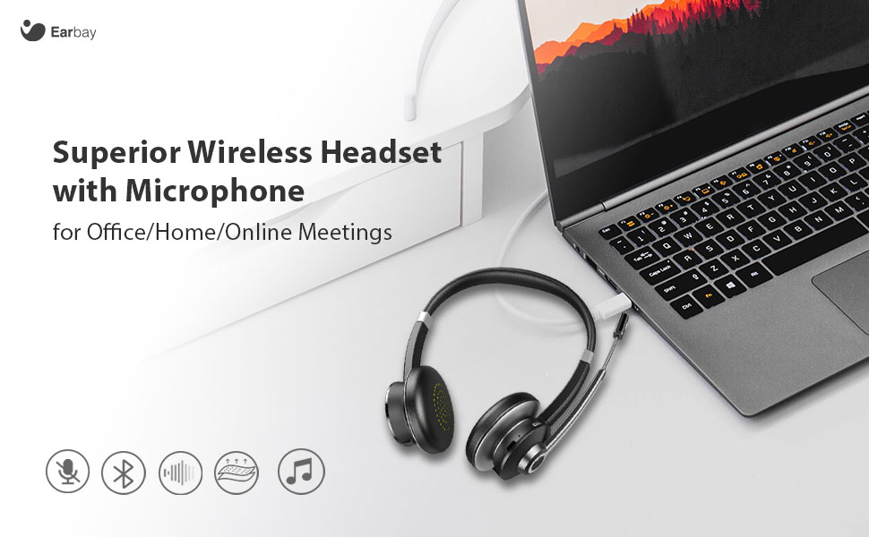 Bluetooth Headset with Microphone, Wireless Headphones Noise Canceling, Bluetooth Headset Mute V5.0, 26H Talking Time for Office, Computer, Cellphone, Skype, Meetings, Call Center, Zoom