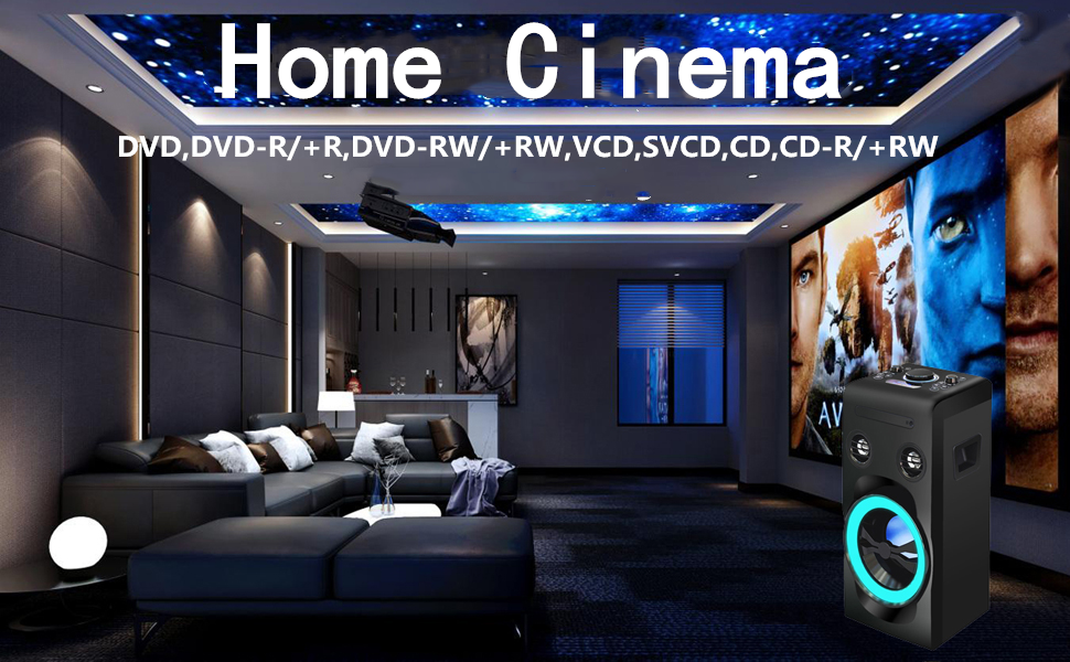 Home Stereo System with DVD Player, CD Player, FM Radio, Bluetooth, AUX in/USB in, Karaoke Function, Earphone Jack, LED Lights, HDMI/RCA Output, HDMI/RCA Cable and Remote Control Included