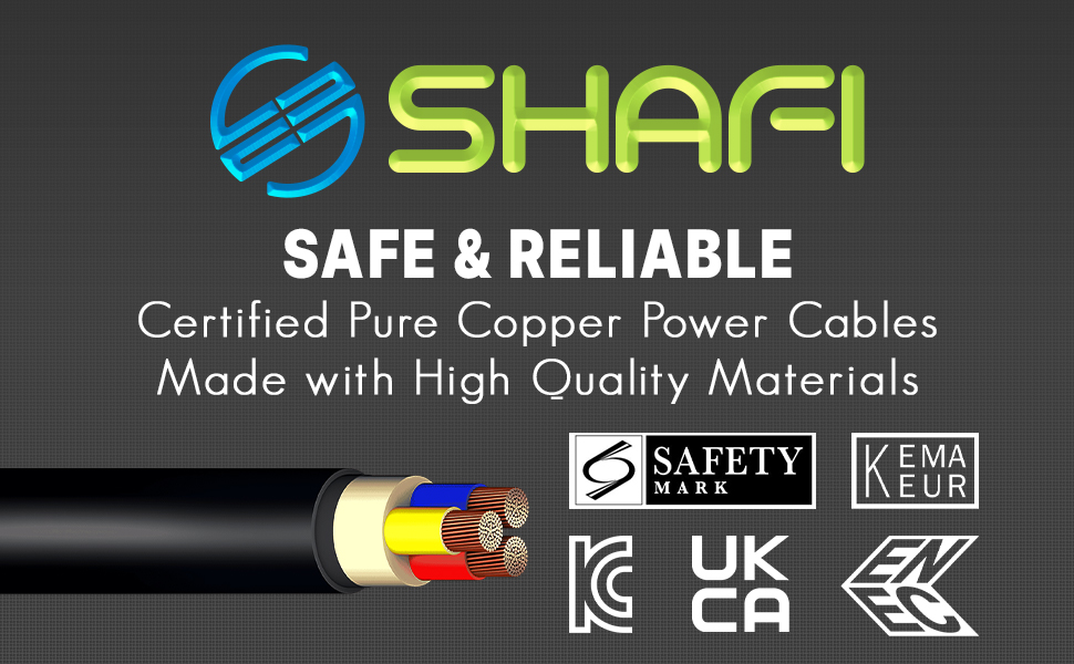 SHAFI IEC-C7 figure of 8 right-angle and straight power leads are designed for various appliances.