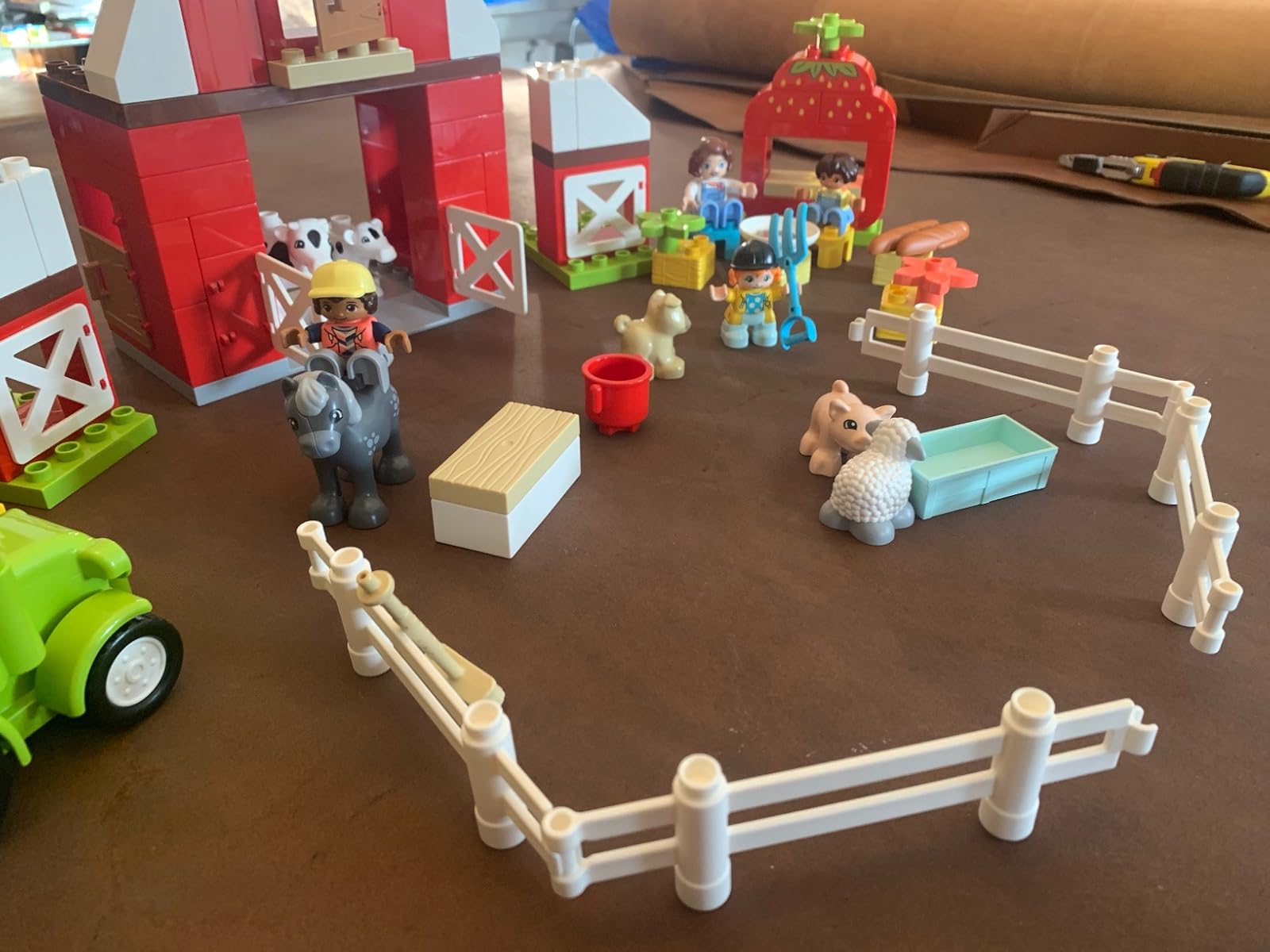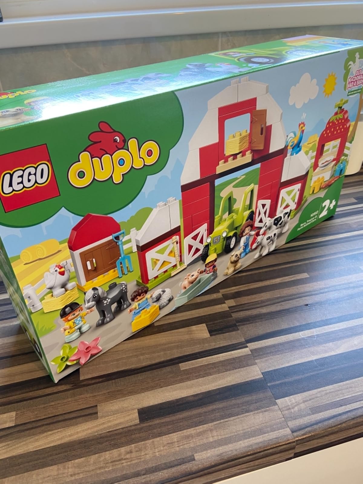 Lovely duplo set, bright, cute, fun, durable and sturdy. Two and a half year old granddaughter loved it especially the animals and tractor.