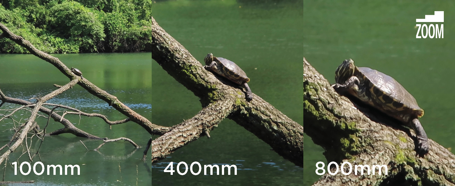 ** Magnification is 1.2x / 4.8x / 9.6x at 100/400/800mm respectively, the focal lengths mentioned here are 35mm equivalents, and the 800mm is 2x digital zoom of 400mm optical focal length