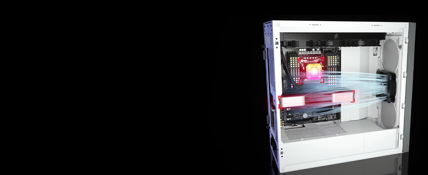 An optimised steel front panel delivers massive airflow to your system for maximum cooling.